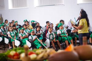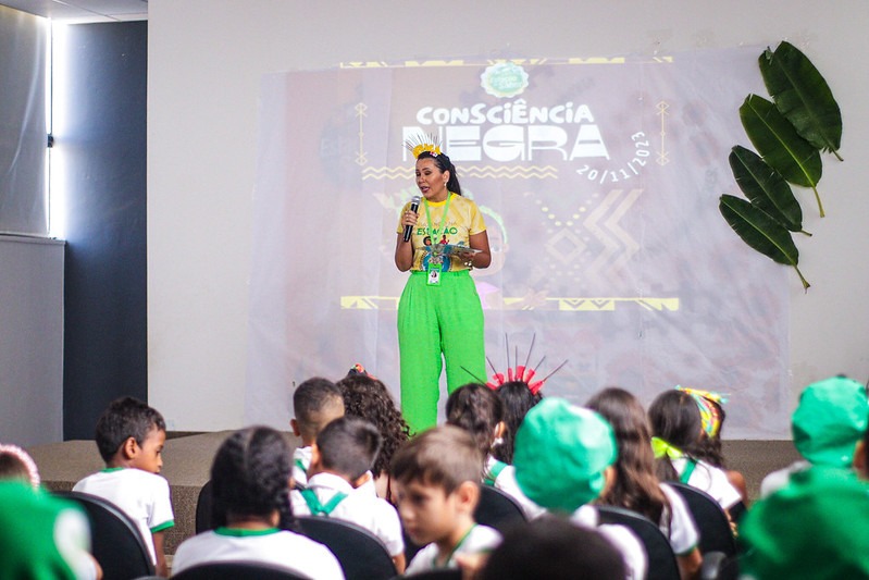 A gestora da Escola, Virna Sarissa, falou sobre a atividade. “Ao longo do ano, nós desenvolvemos o projeto, adaptando-o ao continente africano. Escolhemos hoje, 20 de novembro, Dia da Consciência Negra, para fazer a culminância do projeto pela importância da data. Nós expomos tudo o que a gente vem construindo ao longo do ano. As músicas, as danças, as artes, as brincadeiras e a culinária”, contou Virna.