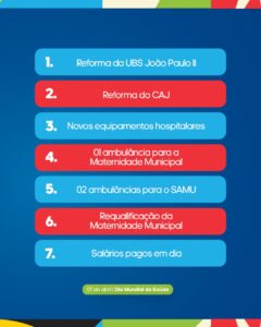 Com foco no fortalecimento da rede municipal, a nova gestão da Sesau tem atuado em diversas frentes, desde a reestruturação física das unidades até a ampliação da oferta de serviços especializados. Um dos principais marcos foi a retomada de obras estratégicas, como a requalificação da Sala Vermelha da UPA, a ampliação da Maternidade Municipal e a reforma das UBSs João Paulo II e Cooperativa Agrícola de Juazeiro (CAJ).