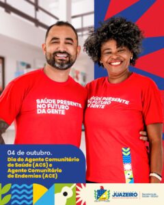 Neste sábado, 4 de outubro, é o Dia Municipal do Agente Comunitário de Saúde e do Agente de Combate às Endemias. A Secretaria de Saúde de Juazeiro, por meio da Vigilância em Saúde e da Atenção Primária, aproveita a data para reconhecer e parabenizar esses profissionais que, diariamente, estão perto da comunidade, garantindo cuidado, orientação e proteção contra doenças.