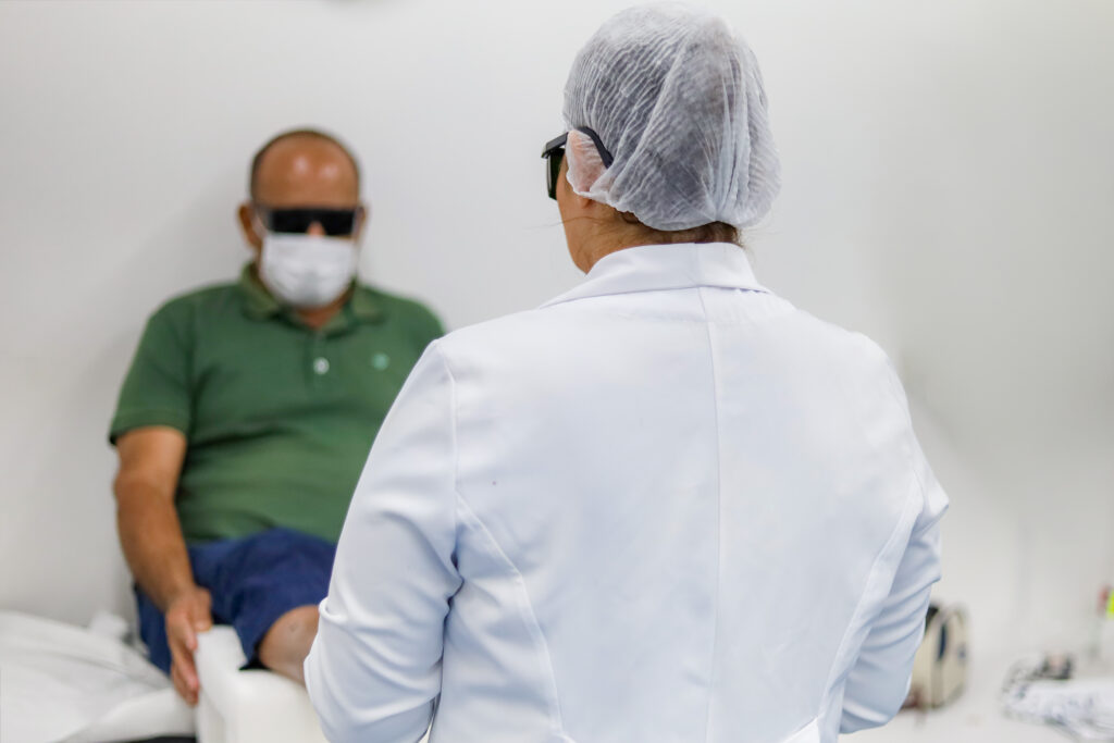 Realizado por meio do Sistema Único de Saúde (SUS), o procedimento utiliza a fotobiomodulação com laser de baixa potência, associado ao azul de metileno a 0,01%, aplicado diretamente na lesão. A combinação promove uma potente ação antimicrobiana, combatendo biofilmes, formados por bactérias, fungos e outros microrganismos, e acelerando o processo de cicatrização.