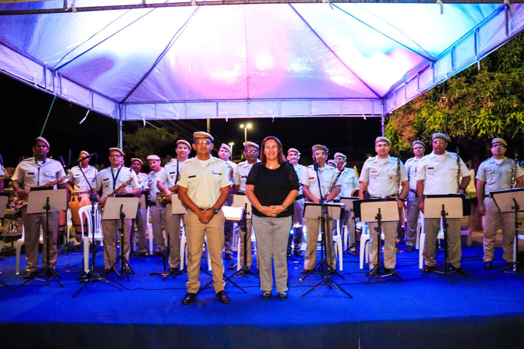 A prefeita Suzana Ramos prestigiou, no início da noite desta sexta-feira (8), a solenidade comemorativa aos 64 anos de criação da Banda de Música Maestro Wanderley (BMMW), do 3° Batalhão de Ensino, Instrução e Capacitação (3°BEIC) de Juazeiro. O concerto musical aconteceu na Orla II, próximo ao Vaporzinho e reuniu autoridades militares e a sociedade em geral.