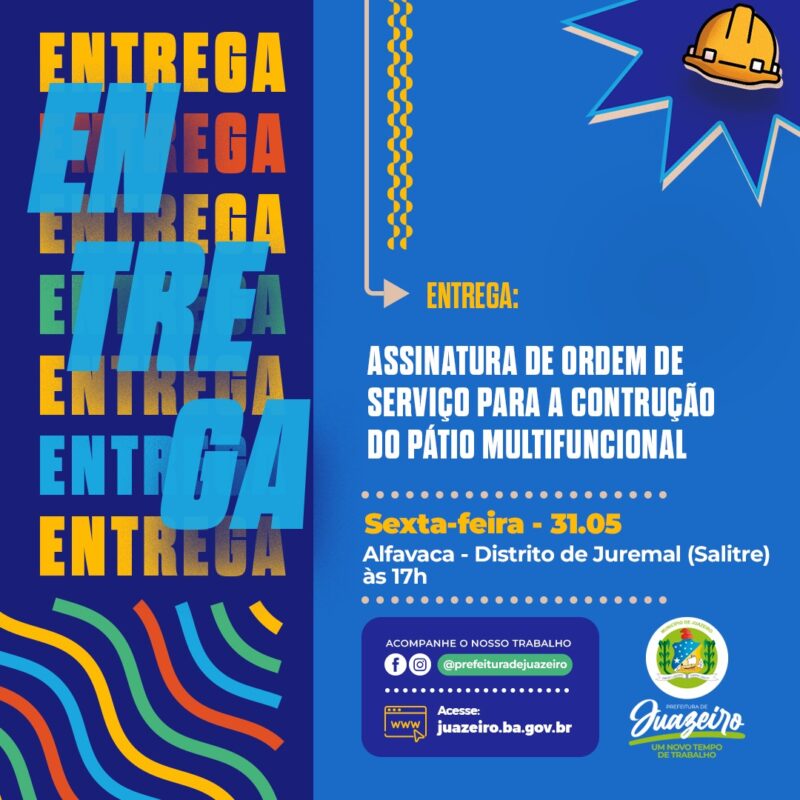 Com um investimento de mais de R$ 350 mil, a prefeita Suzana Ramos vai assinar a ordem de serviço para a construção do Pátio Multifuncional de Alfavaca, no distrito de Junco (Salitre), nesta sexta-feira (31). A ordem de serviço vai ser assinada na localidade, às 17h.