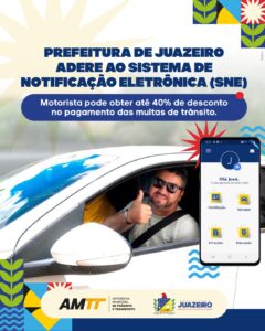 A Prefeitura de Juazeiro, por meio da Autarquia Municipal de Trânsito e Transportes /AMTT, aderiu ao Sistema de Notificação Eletrônica/SNE, que permite aos condutores e proprietários de veículos receber notificações de infrações de trânsito de forma digital e obter desconto de até 40% no valor das multas.