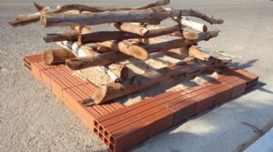 Certifique-se de que toda a estrutura de madeira fique centralizada sobre a base de blocos e areia.