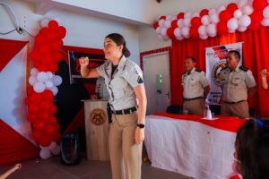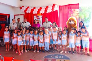 Soldado e instrutora do Proerd, Laisy Silva Bonfim Chagas, explicou sobre a finalidade do programa. “Na rede de Educação Infantil, o programa funciona por meio do desenvolvimento de um trabalho pedagógico realizado por profissionais voluntários da Polícia Militar. Durante a formação, nós abordamos temáticas variadas, entre elas, a orientação sobre comportamentos saudáveis e seguros, como reagir diante da aproximação de um estranho, saber distinguir o toque bom do toque mau, oferecer orientações sobre o trânsito, entre várias outras questões relacionadas à segurança”, comentou Layse.