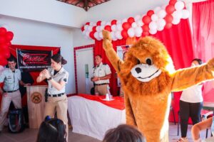 No total, 62 estudantes participaram das atividades formativas. Entusiasmados e em coro, os alunos ecoaram o lema do programa: ‘Luz, câmera, ação’, recebendo certificação, e assumindo o compromisso de serem agentes de combate às drogas e à violência. A cerimônia de culminância do programa também contou com a presença do Leão Dare, mascote do Proerd, que animou a celebração cantando e dançando com os estudantes a música tema do programa, ‘Canção do Proerd’.