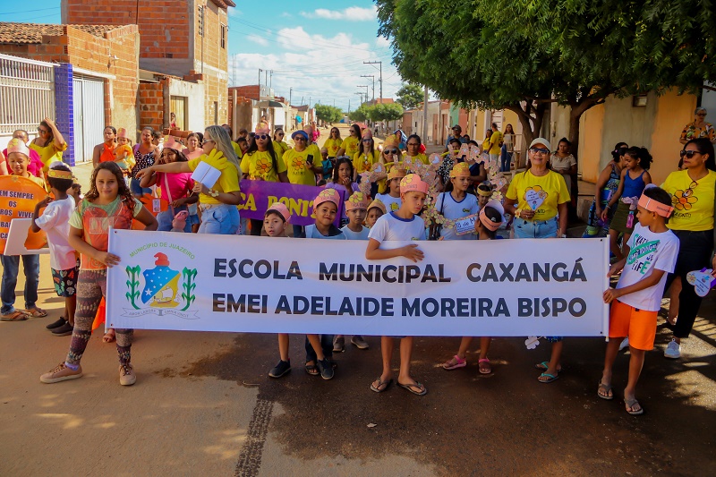 A Prefeitura de Juazeiro, por meio da Secretaria de Educação e Juventude (Seduc), realizou nesta quarta-feira (25) uma caminhada de enceramento da Campanha ‘Maio Laranja’, no bairro Jardim Primavera. A iniciativa envolveu alunos, professores e pais da EMEI Adelaide Moreira Bispo e da Escola Municipal Caxangá, com o objetivo de conscientizar e prevenir o abuso e exploração sexual infantil. As atividades desenvolvidas ao longo do mês foram apresentadas de maneira dinâmica e educativa, ressaltando a importância da proteção e do bem-estar das crianças.
