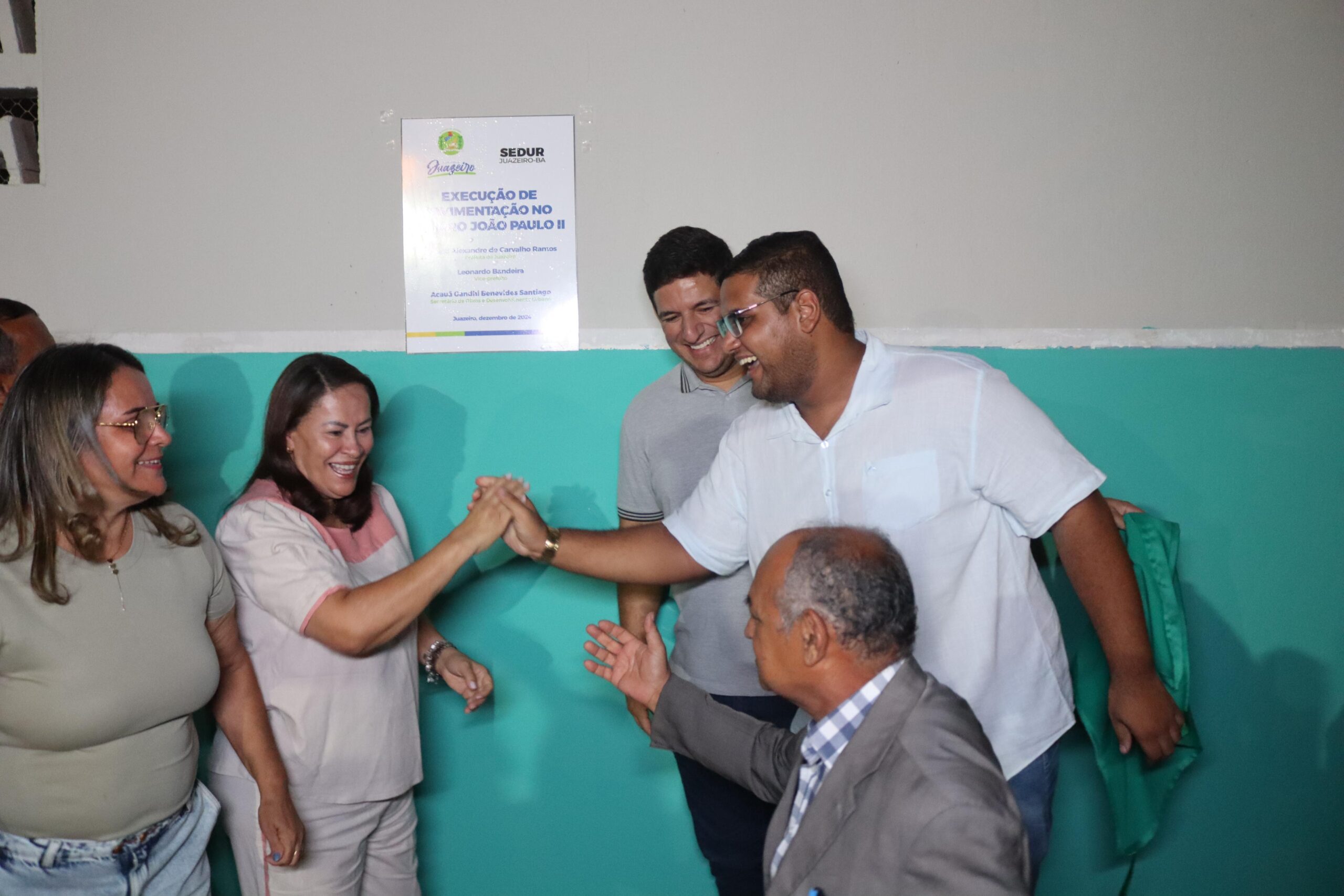 Durante o evento, a prefeita destacou os avanços realizados no bairro durante sua gestão, ressaltando o compromisso com a qualidade de vida da população. “Recebemos o Restaurante Popular interditado, mas requalificamos e devolvemos à comunidade. Também reestruturamos escolas, a UBS, o CRAS e o CEO, garantindo serviços de qualidade. Estamos com obras em andamento, como a pavimentação da Avenida Ebenezer e a construção de uma nova praça. Além disso, asseguramos mais R$ 9 milhões para pavimentar ruas de nove bairros da cidade, o que vai nos permitir atingir 100% de pavimentação aqui no João Paulo II. Estamos transformando Juazeiro com trabalho e dedicação”, enfatizou Suzana.