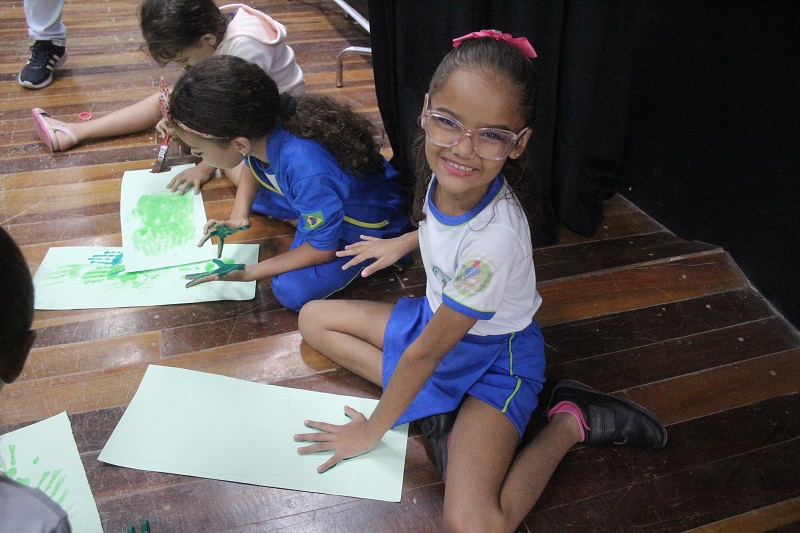 Para finalizar a manhã de conscientização, as crianças participaram de uma atividade de pintura de mãos, onde cada uma delas fez uma obra de arte que será levado para casa como recordação do dia. Esse momento não apenas reforçou a mensagem da preservação ambiental, mas também proporcionou uma conexão emocional com o tema, incentivando-as a compartilhar o aprendizado com suas famílias.