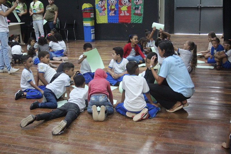Atividades: Brincadeiras lúdicas, montagem de painel de reciclagem, pintura livre e palestra sobre meio ambiente.