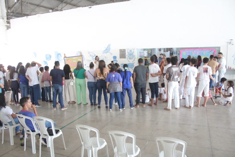 Além da exposição das pinturas e artesanato, também foi realizada uma roda de capoeira, desenho coletivo, brincadeiras e danças.