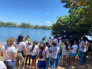 Durante a atividade, as crianças puderam relacionar o aprendizado escolar com a realidade local, reconhecendo a importância do Rio São Francisco para a vida da comunidade, garantindo água para o consumo e para as plantações.