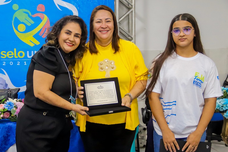 A antiga articuladora da plataforma 1MiO oportunidades e atual professora da Emei Nailde Costa, Rute Barbosa Granja Lacerda, ressaltou o sentimento em compartilhar as conquistas da educação com o município. “É muito satisfatório poder entregar a placa de terceiro lugar entre os municípios da Bahia e Ceará que reuniu o maior número de cadastramento na plataforma 1MiO oportunidades do Unicef, que garante a inclusão produtiva de adolescentes e jovens, de 15 a 24 anos, no mundo do trabalho. Alcançar essa meta mostra que a prefeita Suzana Ramos tem compromisso e responsabilidade social com os nossos adolescentes e jovens, com a oferta de oportunidades de crescimento profissional e acesso ao primeiro emprego”, disse Rute.
