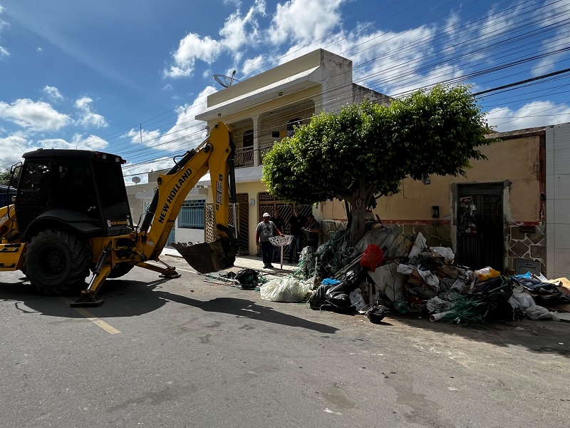 Após denúncias da população, a Prefeitura de Juazeiro, por meio das Secretarias de Meio Ambiente e Ordenamento Urbano (Semaurb) e de Serviços Públicos (SESP), realizou uma ação na manhã desta terça-feira (6), para a remoção de acúmulo de entulhos e lixo em calçada de um imóvel na Rua Manoel Cláudio Nascimento, localizada no bairro Alto da Maravilha. A ação foi motivada pela preocupação com o transtorno causado à vizinhança devido ao acúmulo de resíduos ao longo dos últimos 15 anos por um casal que reside no local.