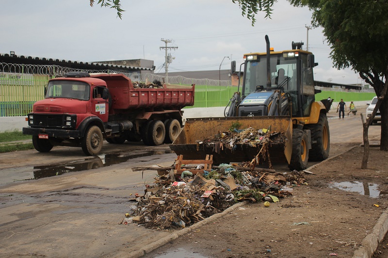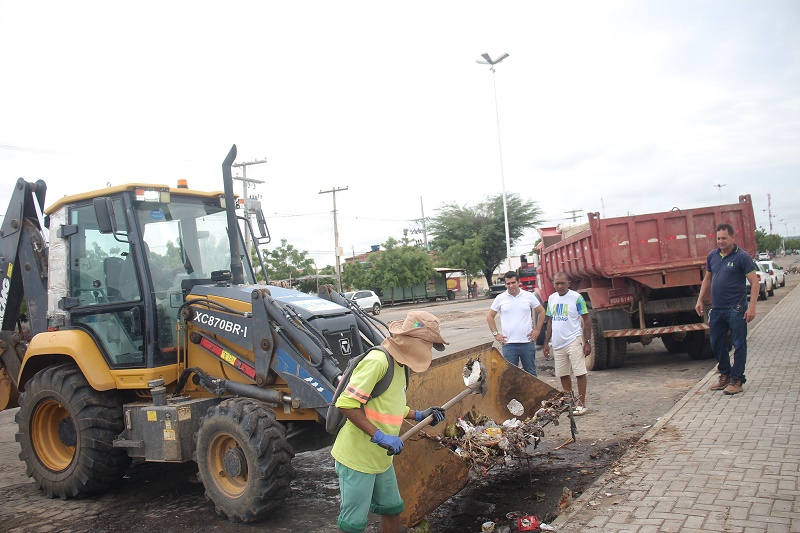 Toda a equipe do setor esteve envolvida no mutirão, que fez a retirada de entulhos e varrição das vias, além da utilização de máquinas para a remoção de lixo acumulado.