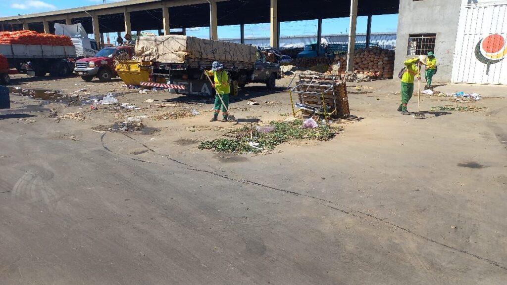 Toda a equipe do setor esteve envolvida nesse mutirão que fez a retirada de entulhos e a varrição de todas as vias. Os trabalhos de limpeza têm sido intensificados, seguindo um cronograma de ação desenvolvido pela Gerência de Limpeza de Feiras e Mercados.