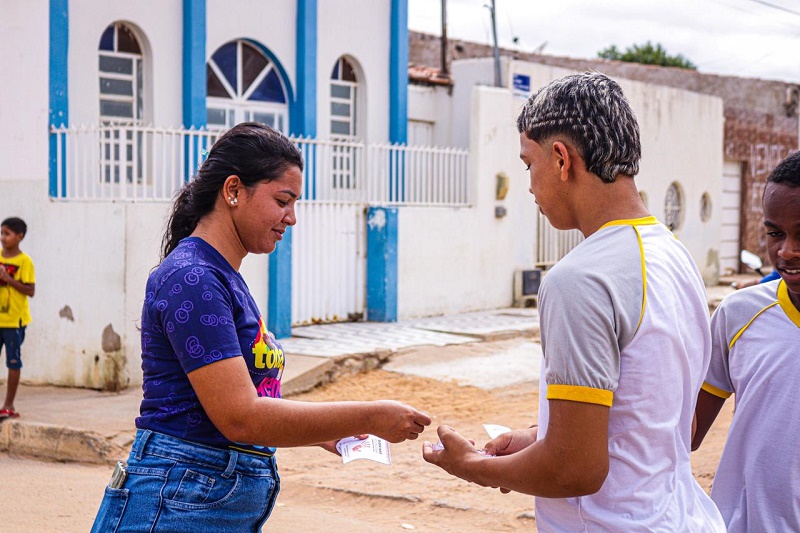 Nesta quarta-feira (12), estudantes da Escola Municipal Maria José Lima da Rocha, localizada no bairro Juazeiro VIII, realizaram uma panfletagem informativa nas mediações da unidade de ensino e também participaram de um bate-papo educativo com o tema ‘Dizer não às drogas é dizer sim para a vida’, ministrada pelo o capitão PM, Daniel Filho, da 78ª CIPM/ Juazeiro. “As atividades desenvolvidas buscam integrar as ações de conscientização de combate às drogas nos espaços educacionais, propondo programações de prevenção e educação sobre o tema, dialogando sobre a segurança pública e as implicações legais do uso e tráfico de drogas”, explicou Daniel.