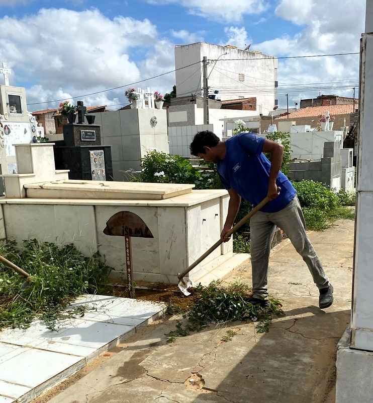 As equipes de capina e varrição seguem atuando no bairro São Geraldo e adjacentes, ações de patrolamento e desobstrução de vias estão sendo realizadas no bairro Antônio Guilhermino, recuperação de calçamento está sendo feito na área central da cidade, reposição de lâmpadas no Alto da Aliança, além de capina e limpeza nos cemitérios municipais.