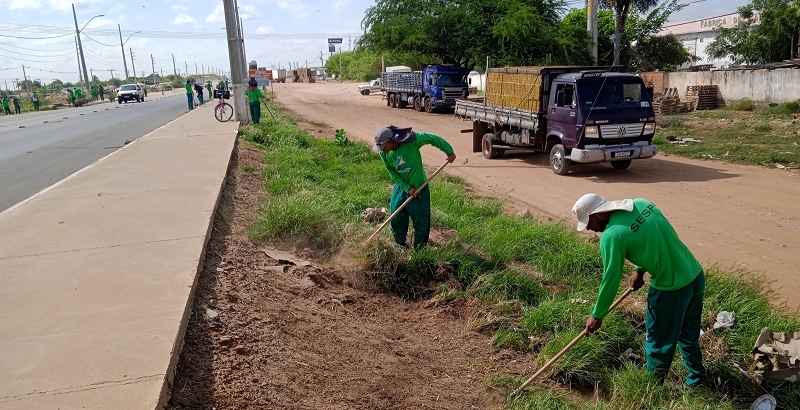 Nesta sexta-feira (17), as equipes seguem com varrição e retirada de entulhos no Centro da cidade e bairro Novo Encontro, poda no Parque Fluvial, Avenida Flaviano Guimarães e Avenida Luiz Inácio e continuação do mutirão de limpeza na BR-407 no sentido Posto Fiscal/Centro.
