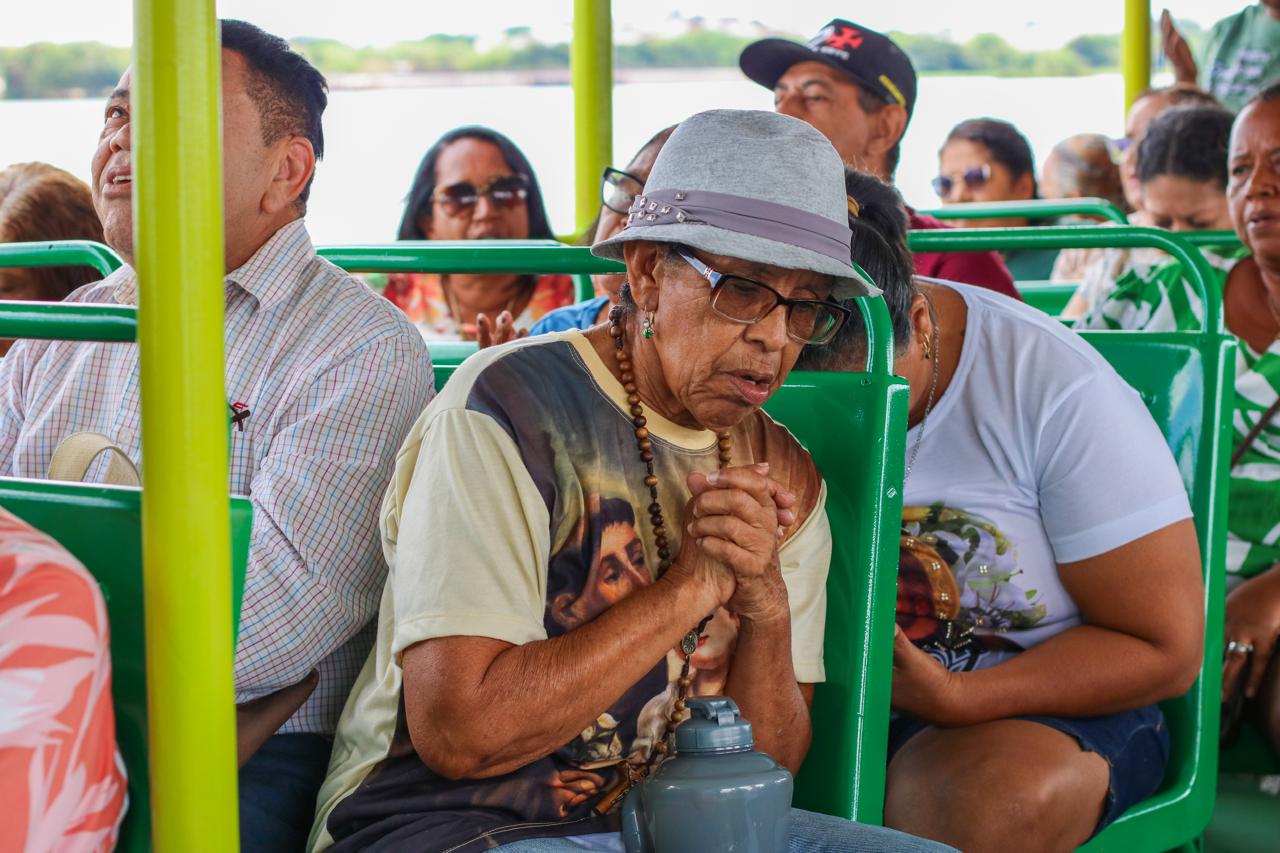 Para quem estava em terra firme, aguardando a chegada dos devotos e da imagem, o som dos cantos ganhava força à medida em que os barcos se aproximavam. Entre os que circulavam por ali, estava Rice Mota. Emocionada frente à representação do santo, contou que “José” nomeia o seu pai e o seu filho. “Sou devota de São José há muito tempo. Eu tenho um verdadeiro carinho, porque ele protege as nossas famílias e ele que ajudou Maria a criar Jesus, não tem importância maior. É uma relação de coração e de muito amor”, disse.
