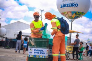 Durante os quatro dias do Festival Juá Literária – Um Rio de Letras, o Programa Juazeiro Limpa atuou de forma intensa para garantir que os mais de 30 mil metros quadrados do evento permanecessem limpos, organizados e ambientalmente responsáveis. A ação contou com o trabalho conjunto das equipes da Secretaria de Serviços Públicos (SESP) e do Serviço de Água e Saneamento Ambiental (SAAE), que realizaram limpeza, coleta e implantação de estruturas de descarte em toda a área do festival.