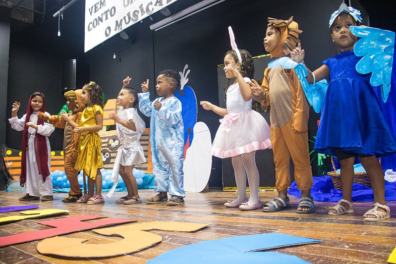 Os estudantes da Escola Municipal de Educação Infantil (Emei) Maria Suely Medrado de Araújo, no bairro Tabuleiro, se reuniram na Praça CEU Alan Cleber de Souza Dantas, junto com seus pais e familiares, para a culminância do projeto “Vem que eu te conto um conto”. A iniciativa, desenvolvida pela unidade escolar desde 2009, visa aproximar os estudantes da leitura e em 2023 teve como tema as histórias bíblicas.