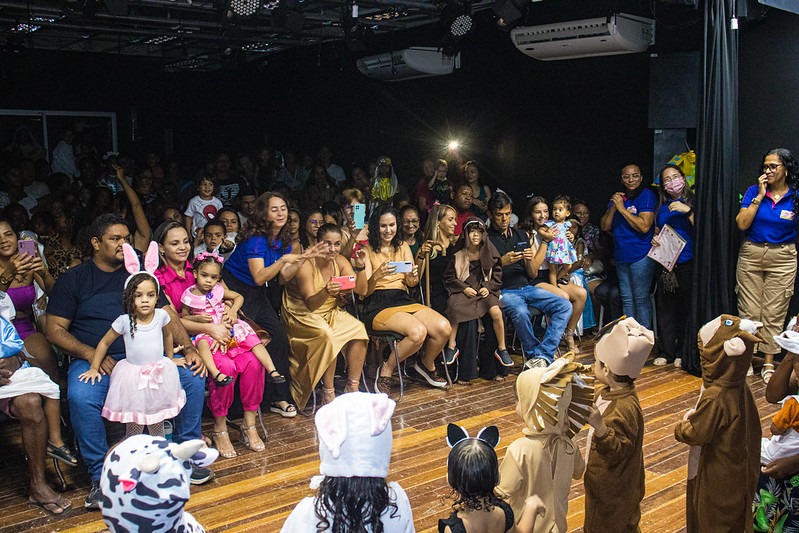 Orgulhosa do seu filho, Ariane Lino de Souza Rocha levou a família para conferir a apresentação. “O projeto é muito interessante, por trazer histórias para as crianças, e, mesmo com dois anos, a cada atividade meu filho chegava em casa, contava a história, sabia dos animais e quando nós falamos da apresentação ele já sabia o que ia fazer. Então foi muito enriquecedor para o desenvolvimento dele”.