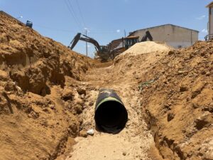 As obras de mobilidade urbana na cidade seguem em ritmo acelerado e estão preparando a Avenida Ozelina Dias para se tornar uma via totalmente requalificada. Atualmente, as equipes trabalham na execução dos serviços de drenagem, etapa essencial que antecede a pavimentação completa da avenida.