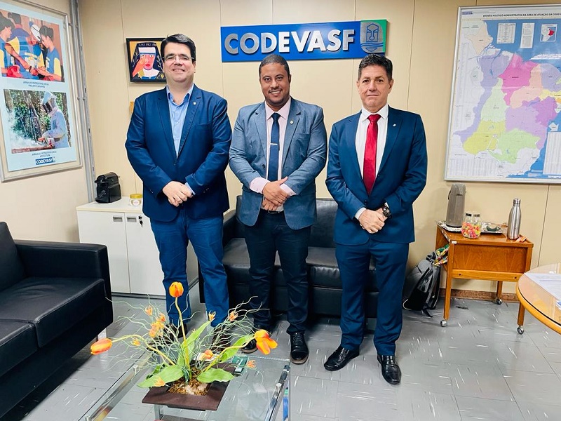 Em Brasília, o vereador Hitallo Marcelino, juntamente com o superintendente da 6ª Superintendência Regional da Codevasf, Miled Cussa Filho, participaram de uma reunião com o diretor de Revitalização, Vivaldo Mendonça. A reunião foi realizada na segunda-feira (13) na sede da Codevasf em Brasília e ajustou os últimos detalhes para o processo licitatório da Adutora do Junco/Curral Velho, um investimento de R$ 32,6 milhões, recurso destinado pelo Ministério da Integração e do Desenvolvimento Regional (MIDR).