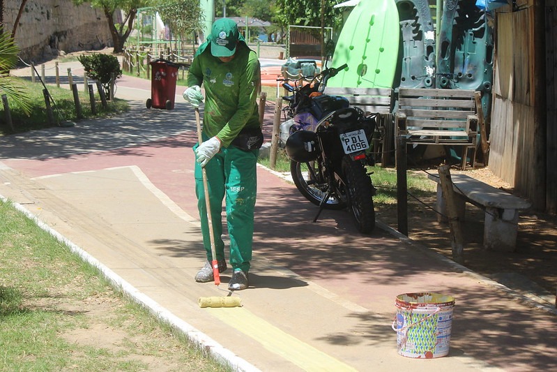 Com a chegada das festividades de Ano Novo, a Prefeitura de Juazeiro, através da Secretaria de Serviços Públicos (SESP), intensificou os esforços para garantir que a população e os visitantes desfrutem de uma orla ainda mais limpa e bonita. Nesta semana que antecede o réveillon, as equipes da Sesp se concentram em ações de pintura dos bancos, ciclo faixas, pistas de caminhada e recuperação de piso na Orla 2.