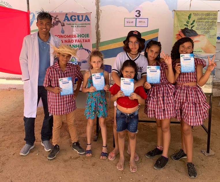 Também foram distribuídos aos alunos e à comunidade, panfletos educativos e orientação sobre o uso da água.