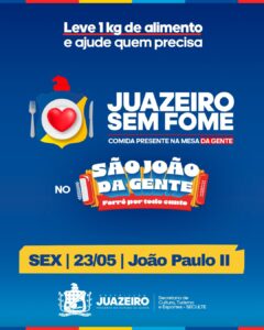 No clima de festa e harmonia do São João da prefeitura de Juazeiro, a solidariedade toma conta da programação com a arrecadação de alimentos do Programa Juazeiro Sem Fome. Nesta sexta-feira (23), os festejos entram no segundo dia, no bairro João Paulo II, e o stand permanece instalado para receber contribuições de quem quer curtir, mas também ajudar quem mais precisa.