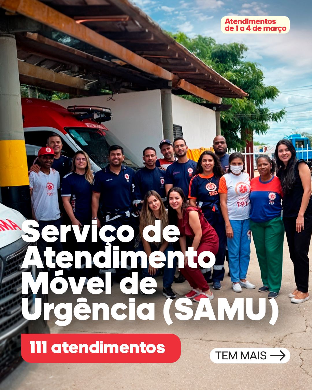Serviço de Atendimento Móvel de Urgência (SAMU) – 111 ocorrências atendidas;