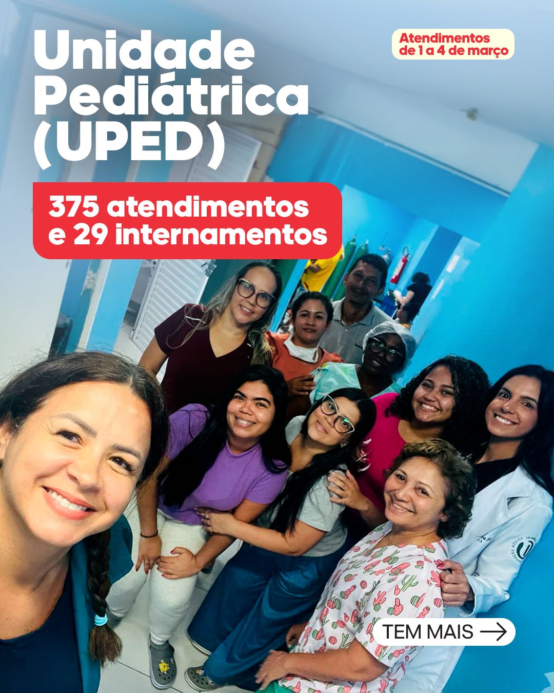 Unidade Pediátrica (UPED) – 375 atendimentos e 29 internamentos;