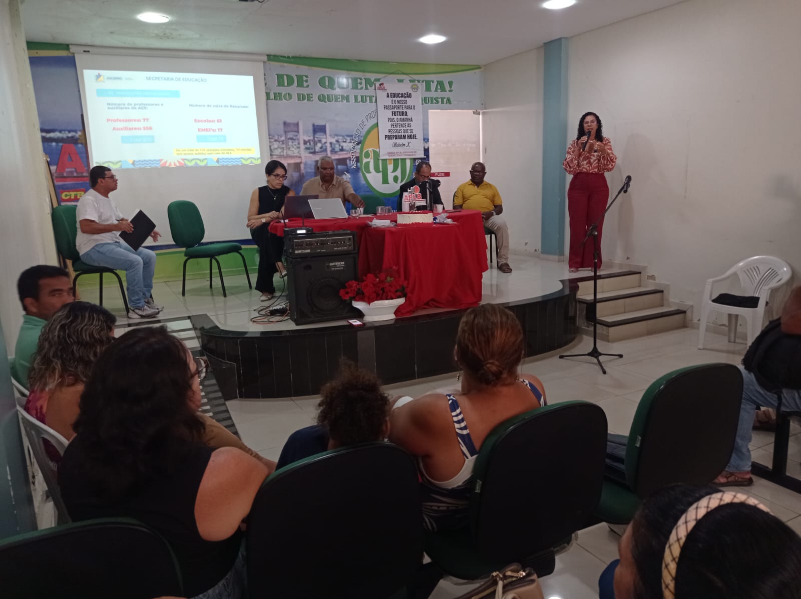A secretária de Educação de Juazeiro, Maéve Melo, participou, nesta quarta-feira (23), da Assembleia Geral promovida pela APLB Sindicato, em alusão à paralisação nacional em defesa e promoção da educação pública. Durante a reunião, a secretária apresentou uma análise situacional da educação pública de Juazeiro, além dos programas e projetos da gestão municipal voltados para a área.