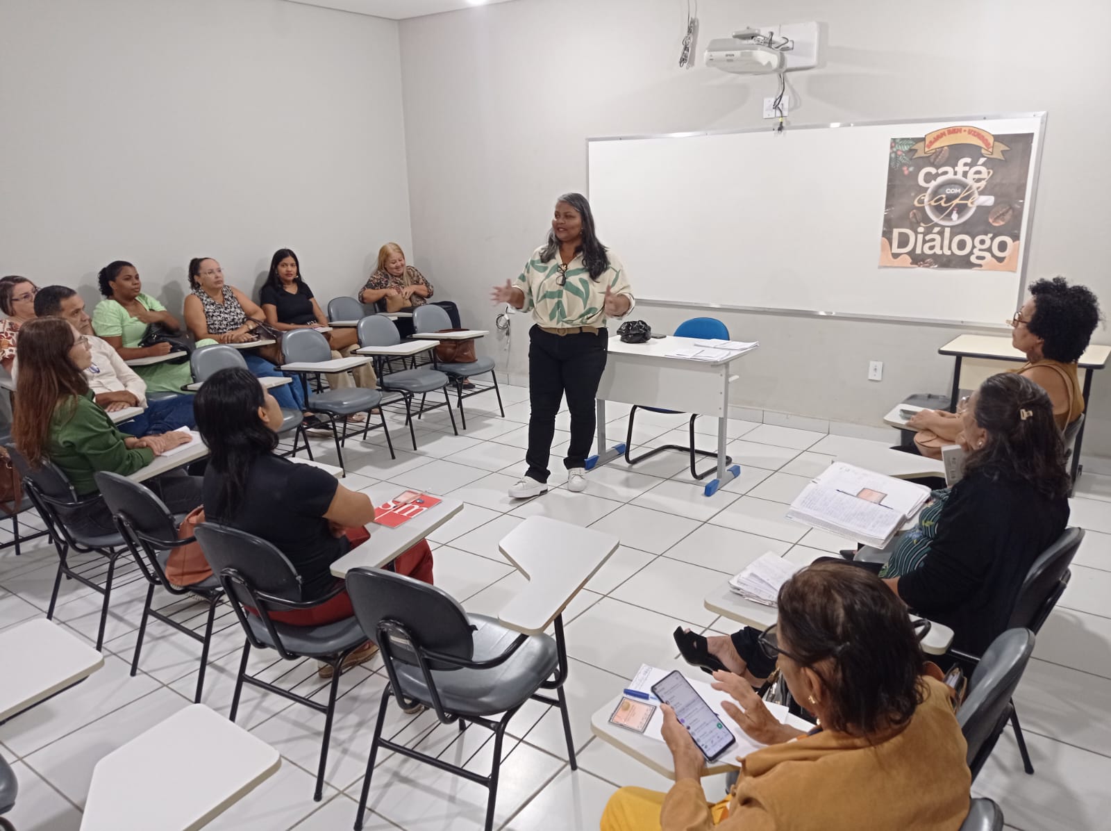 No período da manhã, a formação foi dedicada aos professores de AEE. “O nosso objetivo é fazer com que o professor compreenda a sua base teórica de atendimento e, também, os instrumentos práticos que ele usa para que os alunos com deficiência possam efetivamente romper as barreiras e sejam incluídas de forma que garanta a sua aprendizagem em sala de aula”, explicou a diretora de Educação Inclusiva, Carliane Oliveira, sobre o objetivo do encontro formativo.