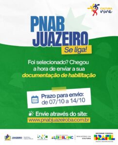 As listas de selecionados dos dois editais podem ser consultadas no site oficial da PNAB em Juazeiro AQUI. Os grupos culturais e agentes culturais classificados deverão encaminhar os documentos para o processo de habilitação até a próxima terça-feira (14). O resultado preliminar das análises deverá ser divulgado no dia 20 de outubro.