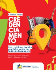 A Prefeitura de Juazeiro, por meio da Secretaria de Cultura, Turismo e Esportes/Seculte, lançou nesta segunda-feira (6) dois editais de chamamento público para credenciamento de artistas que desejam se apresentar em eventos oficiais do município. Um dos editais é voltado para músicos, e o outro, inédito, amplia o cadastramento para grupos e profissionais das mais diversas linguagens artísticas.