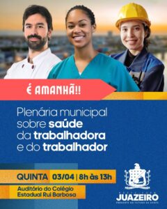 A Secretaria de Saúde de Juazeiro (Sesau), por meio do Centro de Referência de Saúde do Trabalhador (CEREST), realizará nesta quinta-feira (3) a Plenária Popular preparatória para a IV Conferência Macro Regional de Saúde do Trabalhador e da Trabalhadora. O evento tem como objetivo fortalecer o controle social, ampliando a participação popular nos territórios para a efetivação da Política Estadual de Saúde do Trabalhador e da Trabalhadora nos programas e ações dos órgãos setoriais do Estado.