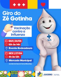 A Secretaria Municipal de Saúde/Sesau informa o novo cronograma da vacinação itinerante contra a Influenza, realizada por meio da ação “Giro do Zé Gotinha”, personagem símbolo nacional das campanhas de vacinação. A iniciativa visa ampliar o acesso à imunização da população e reforçar a importância da prevenção contra o vírus da gripe, além de reforçar a importância de manter o cartão de vacinação sempre atualizado.