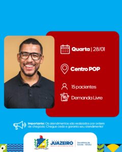 A Unidade de Atendimento Odontológico Móvel (UOM) segue levando serviços para a população. A iniciativa realizada pela Prefeitura de Juazeiro, por meio da Secretaria Municipal de Saúde (Sesau), está oferecendo, entre os dias 26 e 29 de janeiro, 15 atendimentos diários a partir das 8h. É necessário que os pacientes apresentem RG, CPF e Cartão […]