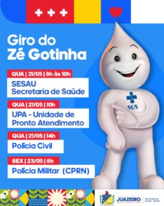 A Secretaria Municipal de Saúde/Sesau informa o novo cronograma da vacinação itinerante contra a Influenza, realizada por meio da ação “Giro do Zé Gotinha”, personagem símbolo nacional das campanhas de vacinação. A iniciativa visa ampliar o acesso à imunização da população e reforçar a importância da prevenção contra o vírus da gripe, além de reforçar a importância de manter o cartão de vacinação sempre atualizado.