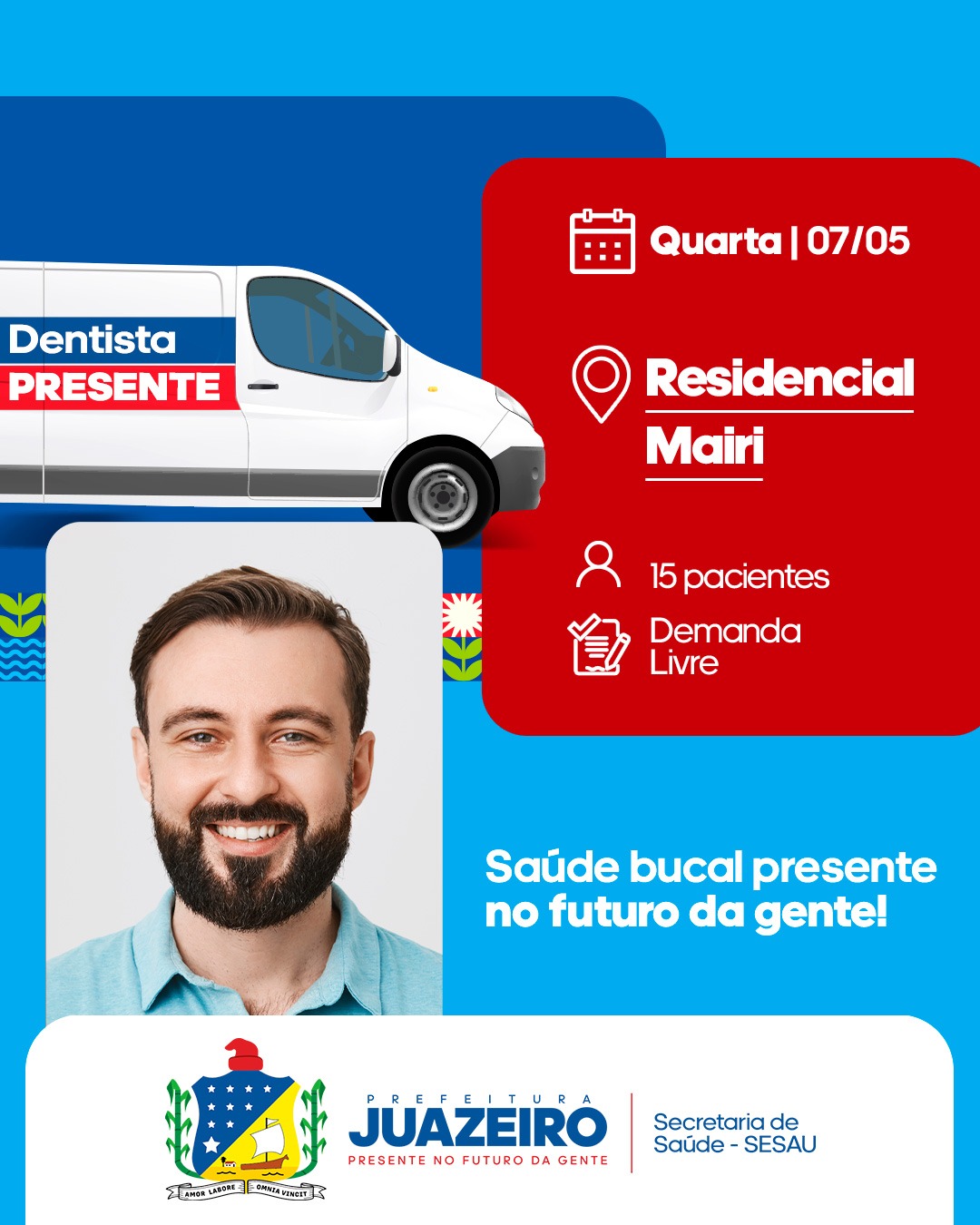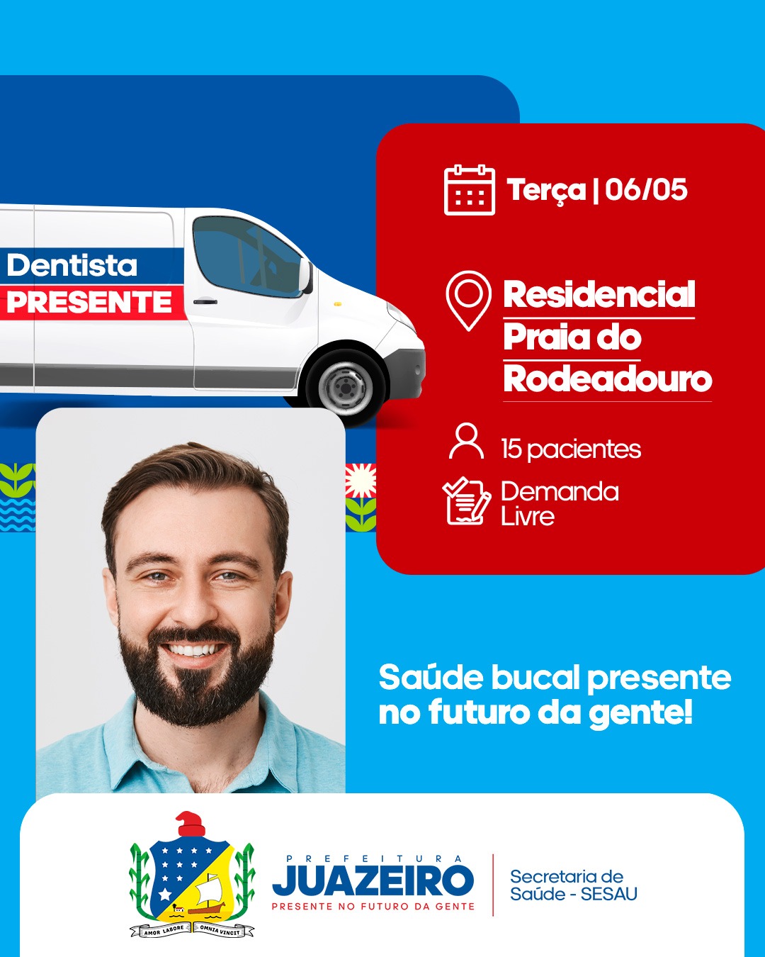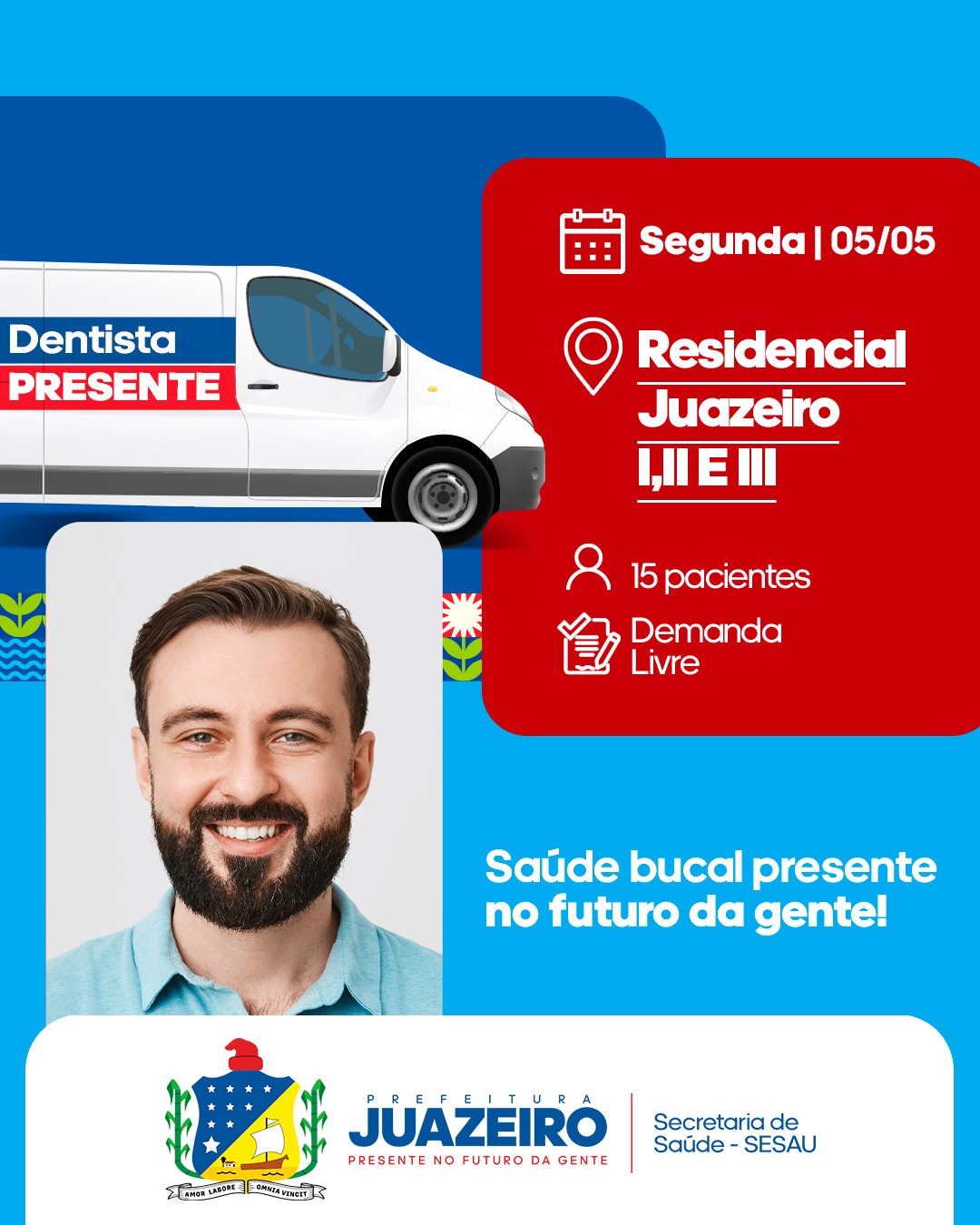 A Prefeitura de Juazeiro, por meio da Secretaria de Saúde/SESAU, anuncia a ampliação dos atendimentos da Unidade Móvel de Atendimento Odontológico/UMO, reforçando o compromisso com o acesso à saúde bucal da população. A partir desta segunda-feira (5), o serviço passará a ser oferecido de segunda a sexta-feira, com atendimentos diários a partir das 8h.